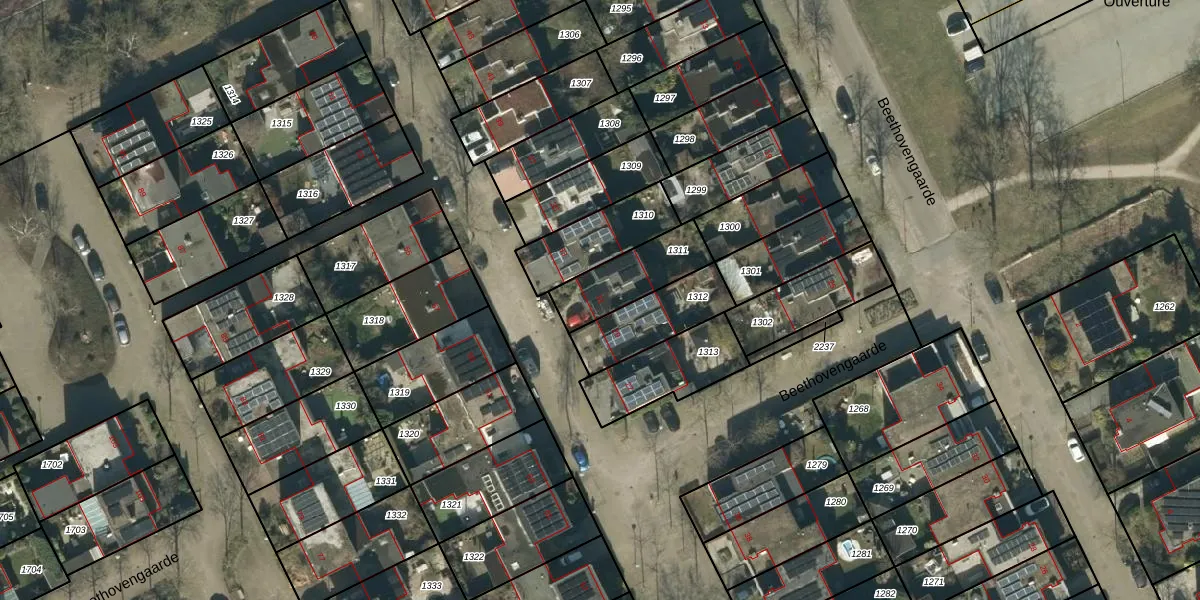 Gebruik de zoekbalk of klik op een perceel voor informatie over de adressen binnen dit perceel.