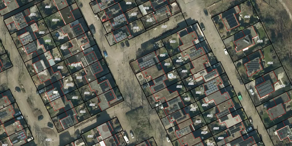 Gebruik de zoekbalk of klik op een perceel voor informatie over de adressen binnen dit perceel.