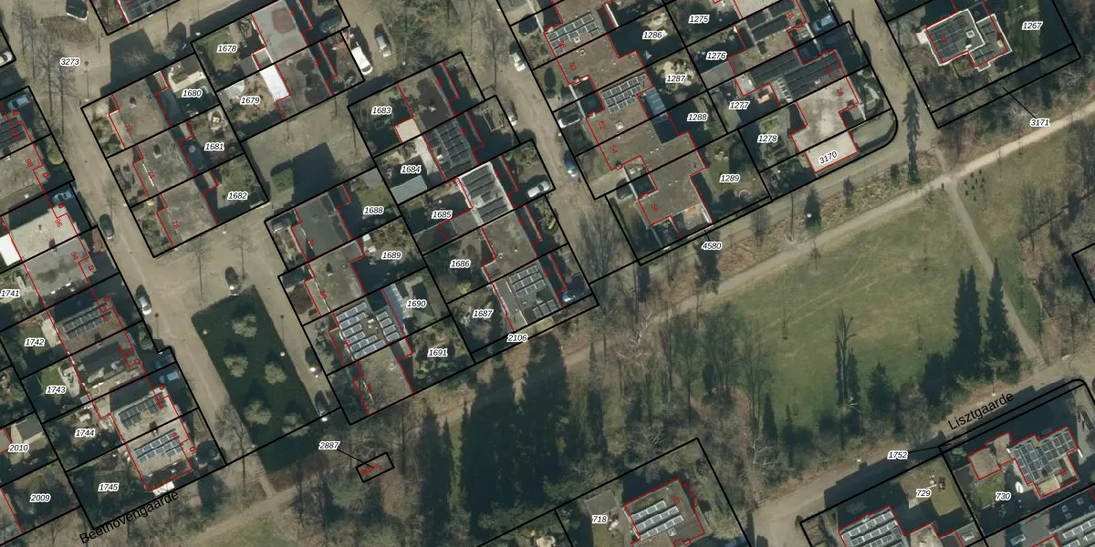 Het perceel waarop Beethovengaarde 58 staat heeft een oppervlakte van 255 m². Dit is een middelgroot perceel. De perceeloppervlakte wordt geregistreerd door het Kadaster. Gedetailleerde informatie over de maten van dit perceel kunt u vinden in het rapport Kadastrale kaart met maatvoering van Beethovengaarde 58.
