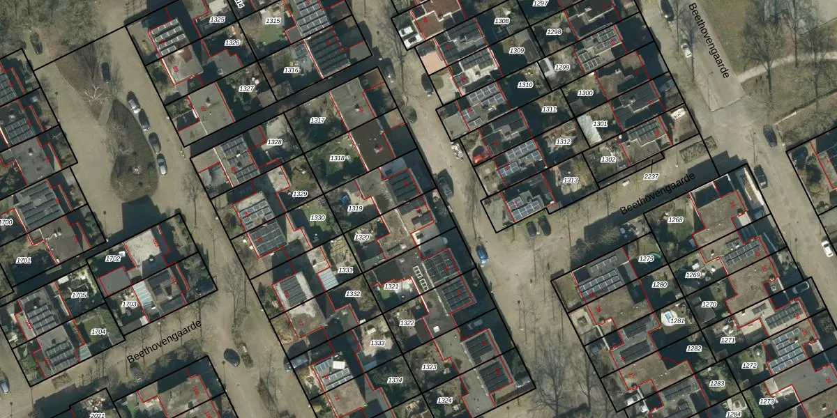 Het perceel waarop Beethovengaarde 61 staat heeft een oppervlakte van 267 m². Dit is een middelgroot perceel. De perceeloppervlakte wordt geregistreerd door het Kadaster. Gedetailleerde informatie over de maten van dit perceel kunt u vinden in het rapport Kadastrale kaart met maatvoering van Beethovengaarde 61.