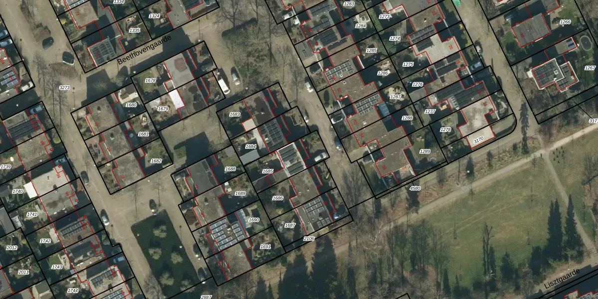 Gebruik de zoekbalk of klik op een perceel voor informatie over de adressen binnen dit perceel.