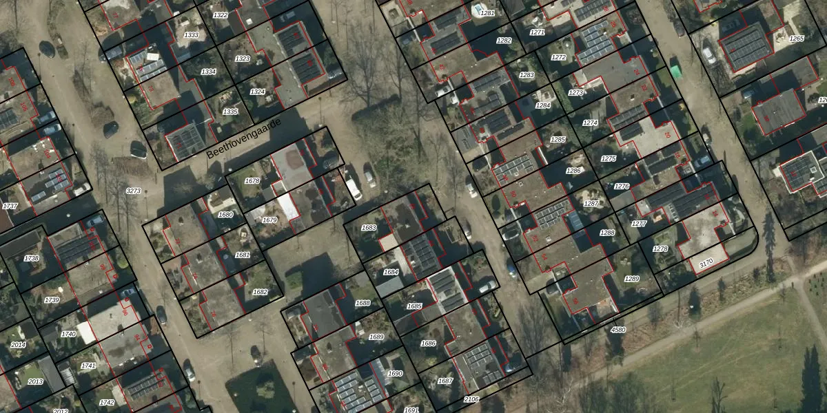Het perceel waarop Beethovengaarde 66 staat heeft een oppervlakte van 233 m². Dit is een middelgroot perceel. De perceeloppervlakte wordt geregistreerd door het Kadaster. Gedetailleerde informatie over de maten van dit perceel kunt u vinden in het rapport Kadastrale kaart met maatvoering van Beethovengaarde 66.