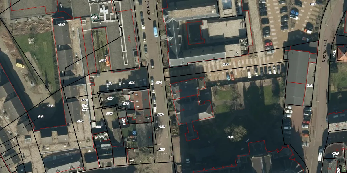 Het perceel waarop Begijnenstraat 1-C staat heeft een oppervlakte van 5641 m². Dit is een zeer groot perceel. De perceeloppervlakte wordt geregistreerd door het Kadaster. Gedetailleerde informatie over de maten van dit perceel kunt u vinden in het rapport Kadastrale kaart met maatvoering van Begijnenstraat 1-C.