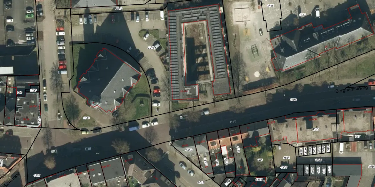 Het perceel waarop Berghemseweg 10 staat heeft een oppervlakte van 3244 m². Dit is een zeer groot perceel. De perceeloppervlakte wordt geregistreerd door het Kadaster. Gedetailleerde informatie over de maten van dit perceel kunt u vinden in het rapport Kadastrale kaart met maatvoering van Berghemseweg 10.