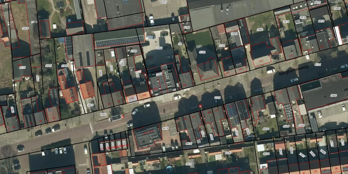 Berghemseweg 106 is gelegen op kadastraal perceel OSS00E2393. Deze kadastrale aanduiding is uniek en wordt gebruikt door het Kadaster om eigendomsrechten en andere zakelijke rechten vast te leggen. Het perceel maakt onderdeel uit van de kadastrale gemeente Oss.