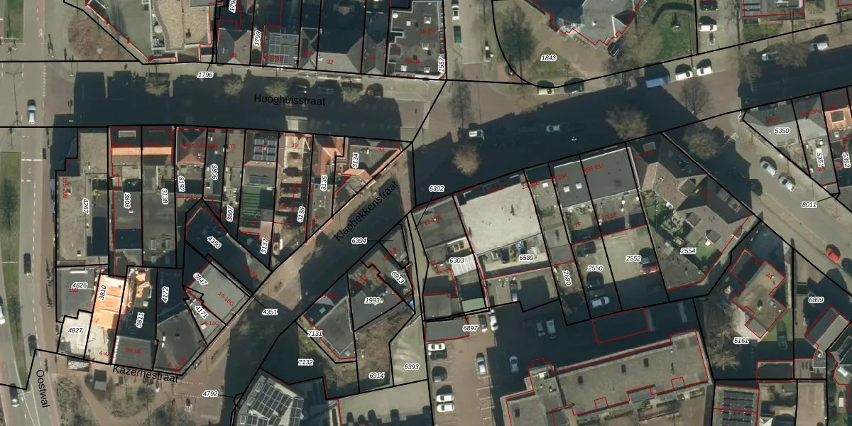 Het perceel waarop het adres ligt is OSS00-E-6303. De afkorting 'OSS00' staat voor kadastrale gemeente Oss. De gemiddelde perceelgrootte in Oss is 2394,22 m². Dit perceel is kleiner: de perceeloppervlakte bedraagt 328 m². De grootste perceeloppervlakte in de kadastrale gemeente is 36,1 ha. De kleinste oppervlakte bedraagt 0 m². Op het perceel zijn 4 adressen aanwezig. De laatste wijziging in het de Basisregistratie Kadaster (BRK) was op 02-02-2011.