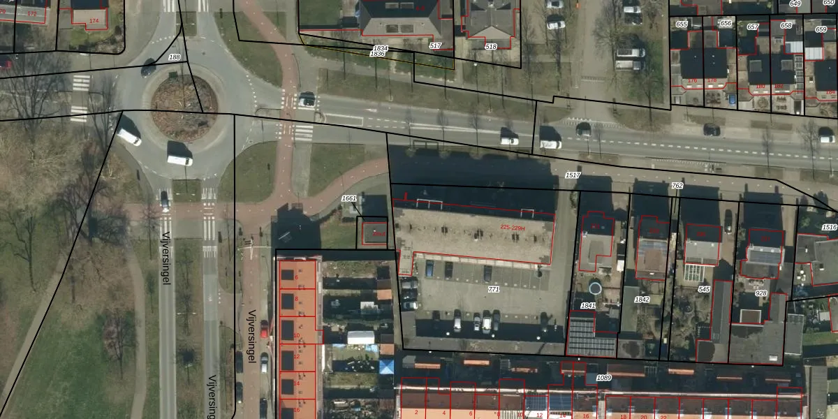 Het perceel waarop het adres ligt is OSS00-G-771. De afkorting 'OSS00' staat voor kadastrale gemeente Oss. De gemiddelde perceelgrootte in Oss is 2394,22 m². Dit perceel is kleiner: de perceeloppervlakte bedraagt 1670 m². Het kleinste perceel in de kadastrale gemeente is 0 m² groot. De grootste perceeloppervlakte is 36,1 ha. Er zijn 26 adressen aanwezig op het perceel. In de Basisregistratie Kadaster (BRK) werden de grenzen van het perceel geregistreerd op 08-07-2009.