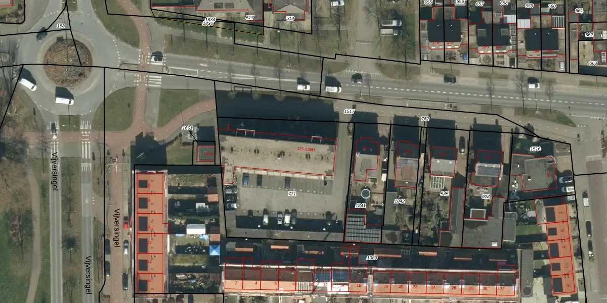 Het perceel waarop het adres ligt is OSS00-G-771. De afkorting 'OSS00' staat voor kadastrale gemeente Oss. De gemiddelde perceelgrootte in Oss is 2394,22 m². Dit perceel is kleiner: de perceeloppervlakte bedraagt 1670 m². De grootste perceeloppervlakte in de kadastrale gemeente is 36,1 ha. De kleinste oppervlakte bedraagt 0 m². Er zijn 26 adressen aanwezig op het perceel. In de Basisregistratie Kadaster (BRK) werden de grenzen van het perceel geregistreerd op 08-07-2009.