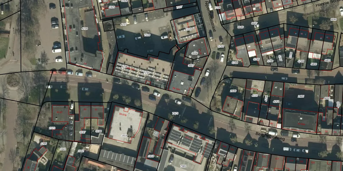 Het perceel waarop Berghemseweg 38-F staat heeft een oppervlakte van 401 m². Dit is een groot perceel. De perceeloppervlakte wordt geregistreerd door het Kadaster. Gedetailleerde informatie over de maten van dit perceel kunt u vinden in het rapport Kadastrale kaart met maatvoering van Berghemseweg 38-F.