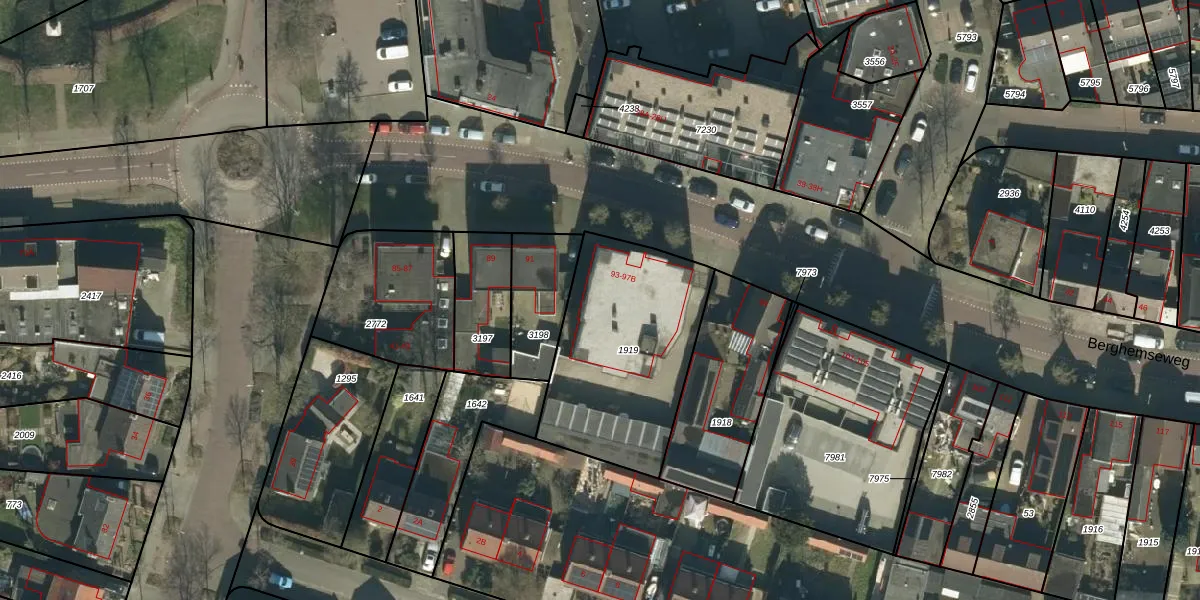 Berghemseweg 97 is gelegen op kadastraal perceel OSS00E1919. Deze kadastrale aanduiding is uniek en wordt gebruikt door het Kadaster om eigendomsrechten en andere zakelijke rechten vast te leggen. Het perceel maakt onderdeel uit van de kadastrale gemeente Oss.