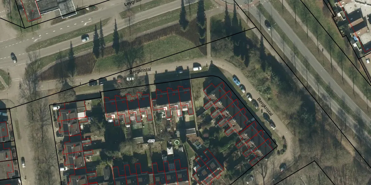 Het perceel waarop Bergkristal 16 staat heeft een oppervlakte van 6159 m². Dit is een zeer groot perceel. De perceeloppervlakte wordt geregistreerd door het Kadaster. Gedetailleerde informatie over de maten van dit perceel kunt u vinden in het rapport Kadastrale kaart met maatvoering van Bergkristal 16.