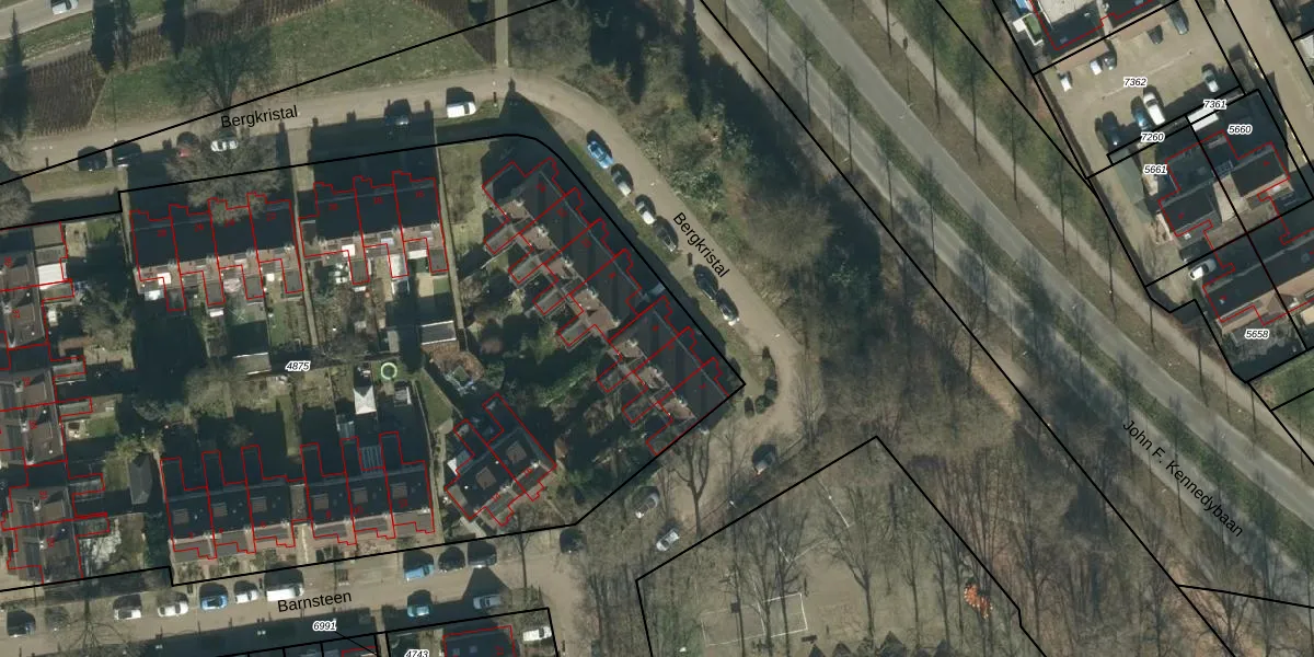 Bergkristal 6 is gelegen op kadastraal perceel OSS00E4875. Deze kadastrale aanduiding is uniek en wordt gebruikt door het Kadaster om eigendomsrechten en andere zakelijke rechten vast te leggen. Het perceel maakt onderdeel uit van de kadastrale gemeente Oss.