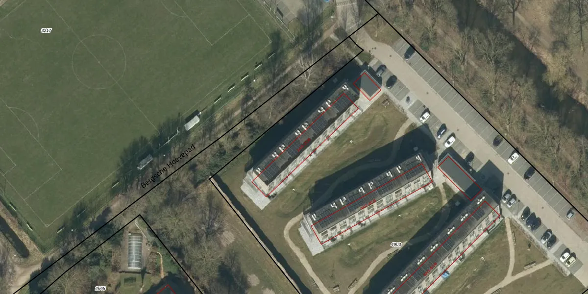 Bergsche Hoevepad 2-A-5 is gelegen op kadastraal perceel OSS00L4903. Deze kadastrale aanduiding is uniek en wordt gebruikt door het Kadaster om eigendomsrechten en andere zakelijke rechten vast te leggen. Het perceel maakt onderdeel uit van de kadastrale gemeente Oss.