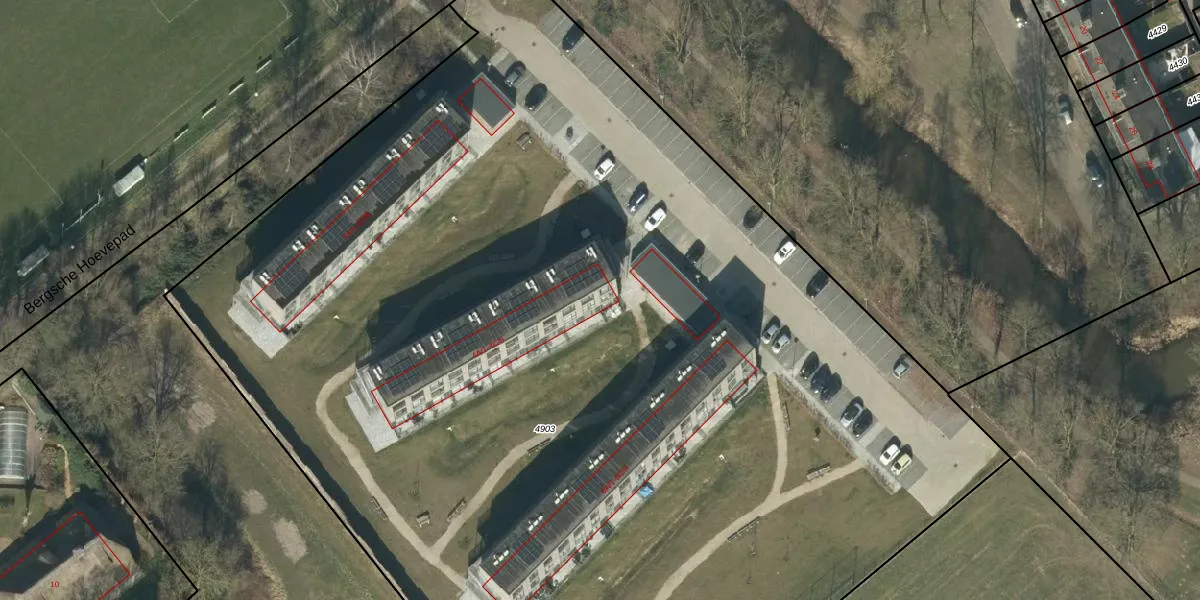 Het perceel waarop Bergsche Hoevepad 4-C-1 staat heeft een oppervlakte van 9820 m². Dit is een zeer groot perceel. De perceeloppervlakte wordt geregistreerd door het Kadaster. Gedetailleerde informatie over de maten van dit perceel kunt u vinden in het rapport Kadastrale kaart met maatvoering van Bergsche Hoevepad 4-C-1.