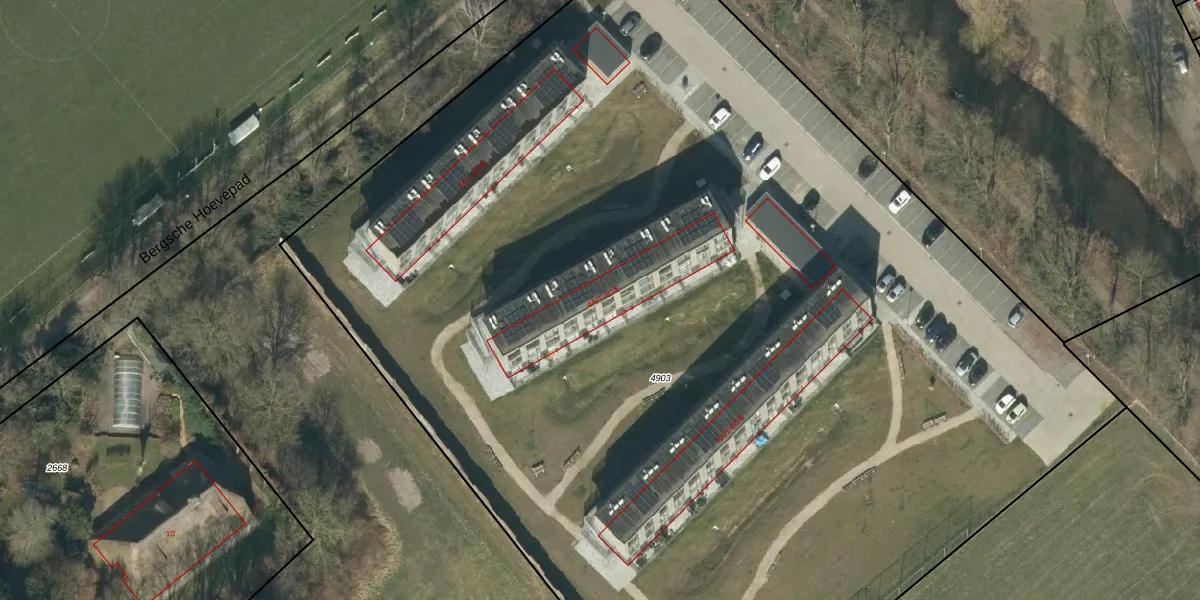 Het perceel waarop Bergsche Hoevepad 4-B-5 staat heeft een oppervlakte van 9820 m². Dit is een zeer groot perceel. De perceeloppervlakte wordt geregistreerd door het Kadaster. Gedetailleerde informatie over de maten van dit perceel kunt u vinden in het rapport Kadastrale kaart met maatvoering van Bergsche Hoevepad 4-B-5.
