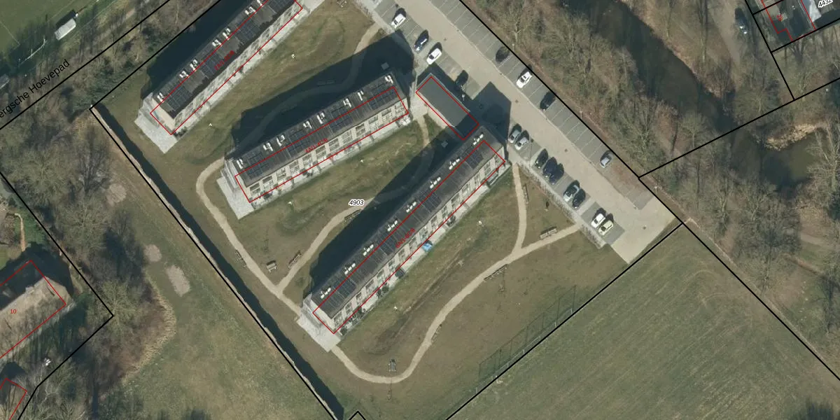 Het perceel waarop Bergsche Hoevepad 6-A-4 staat heeft een oppervlakte van 9820 m². Dit is een zeer groot perceel. De perceeloppervlakte wordt geregistreerd door het Kadaster. Gedetailleerde informatie over de maten van dit perceel kunt u vinden in het rapport Kadastrale kaart met maatvoering van Bergsche Hoevepad 6-A-4.
