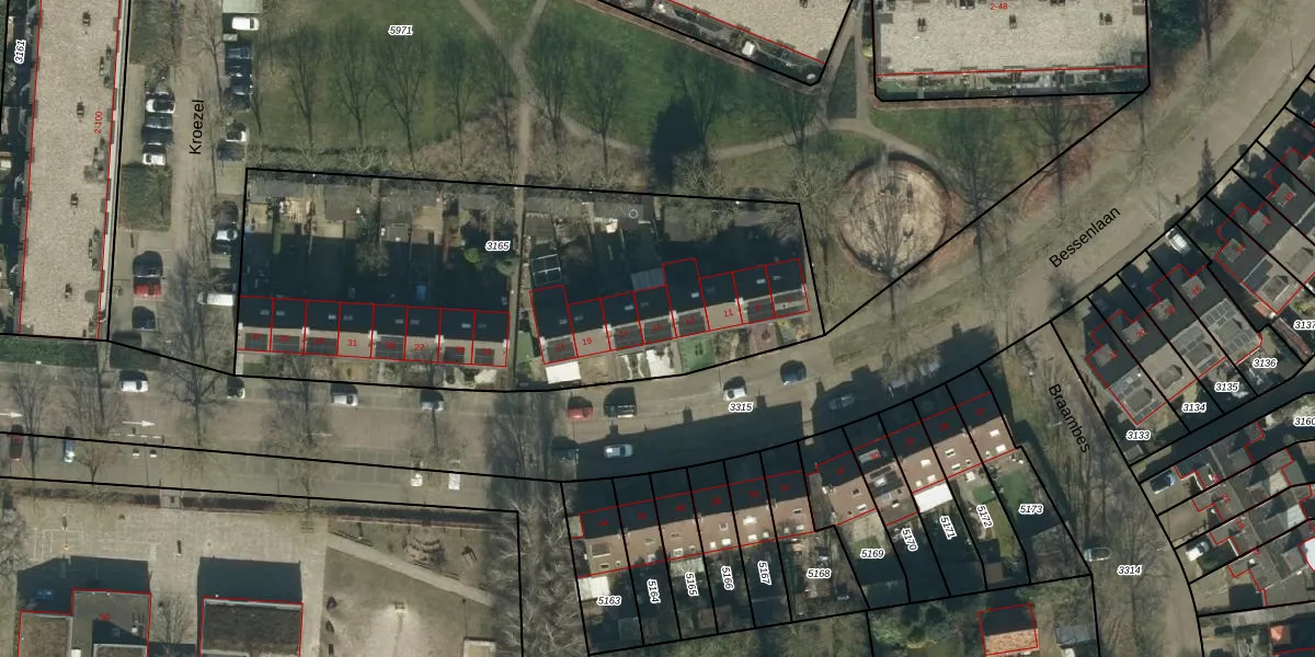 Bessenlaan 15 is gelegen op kadastraal perceel OSS00K3165. Deze kadastrale aanduiding is uniek en wordt gebruikt door het Kadaster om eigendomsrechten en andere zakelijke rechten vast te leggen. Het perceel maakt onderdeel uit van de kadastrale gemeente Oss.