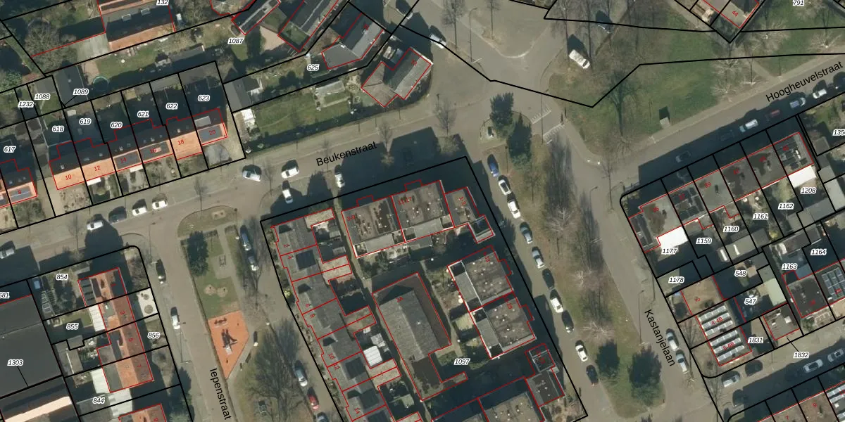 Beukenstraat 13 is gelegen op kadastraal perceel OSS00F1097. Deze kadastrale aanduiding is uniek en wordt gebruikt door het Kadaster om eigendomsrechten en andere zakelijke rechten vast te leggen. Het perceel maakt onderdeel uit van de kadastrale gemeente Oss.