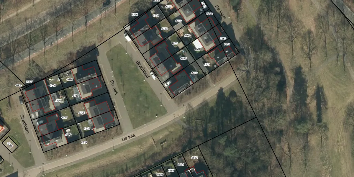 Gebruik de zoekbalk of klik op een perceel voor informatie over de adressen binnen dit perceel.
