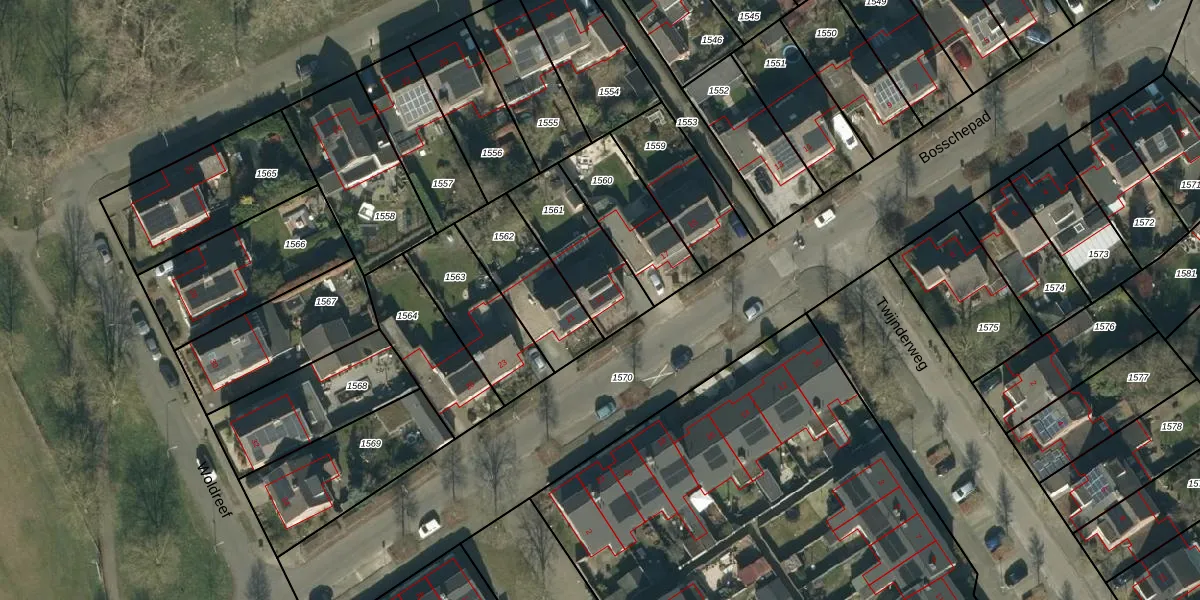 Gebruik de zoekbalk of klik op een perceel voor informatie over de adressen binnen dit perceel.