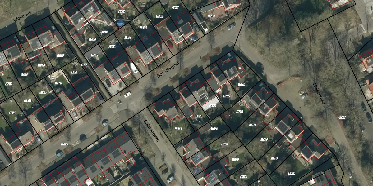Gebruik de zoekbalk of klik op een perceel voor informatie over de adressen binnen dit perceel.