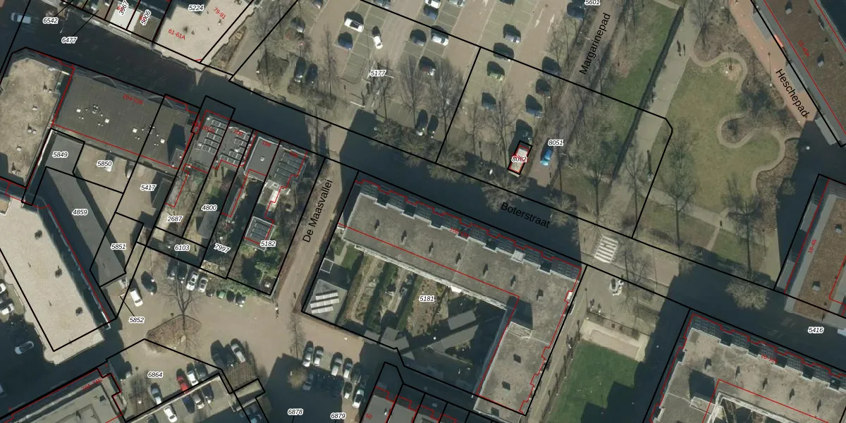 Boterstraat 124 is gelegen op kadastraal perceel OSS00E5181. Deze kadastrale aanduiding is uniek en wordt gebruikt door het Kadaster om eigendomsrechten en andere zakelijke rechten vast te leggen. Het perceel maakt onderdeel uit van de kadastrale gemeente Oss.