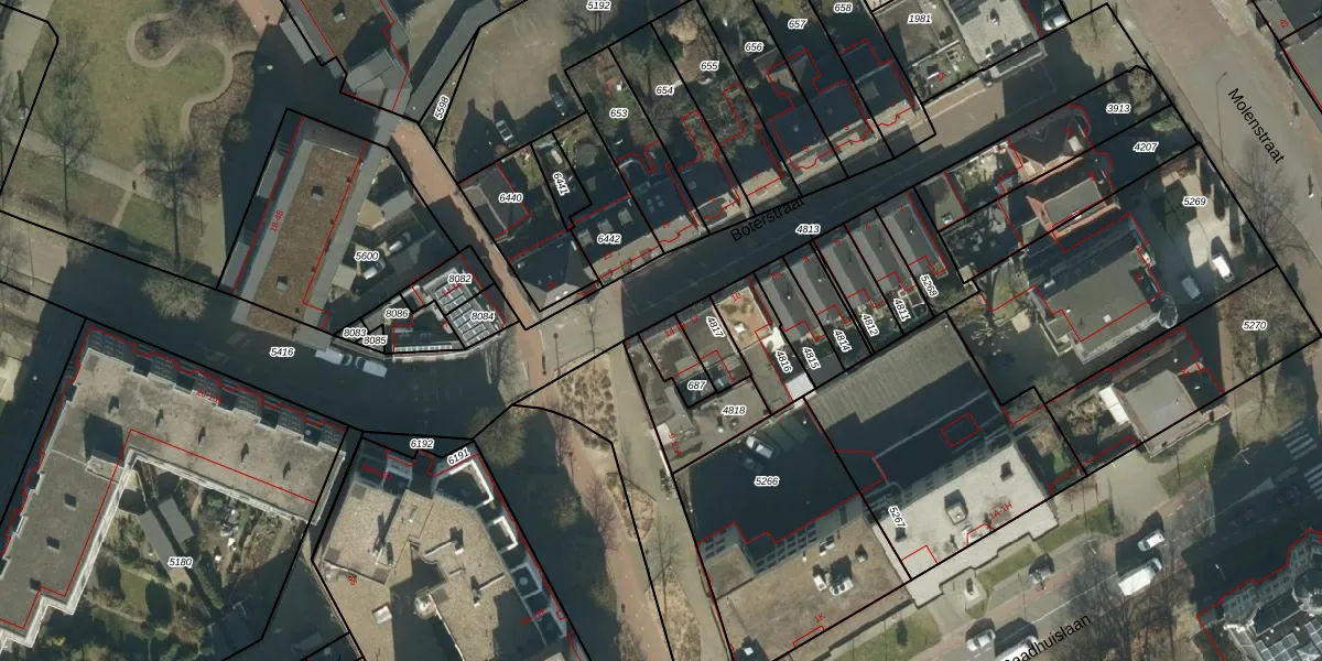 Het perceel waarop Boterstraat 14 staat heeft een oppervlakte van 77 m². Dit is een klein perceel. De perceeloppervlakte wordt geregistreerd door het Kadaster. Gedetailleerde informatie over de maten van dit perceel kunt u vinden in het rapport Kadastrale kaart met maatvoering van Boterstraat 14.