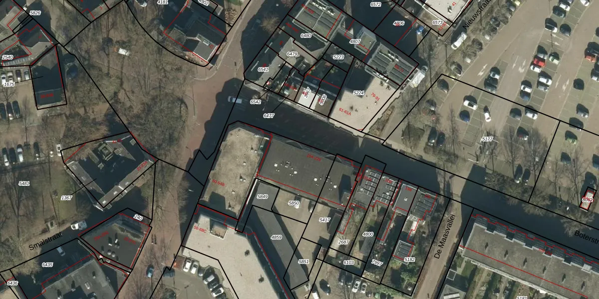 Het adres is gelegen op perceel 5850 in de sectie E en de kadastrale gemeente Oss. De kadastrale aanduiding is aldus OSS00-E-5850. Het perceel is 958 m² groot. Dat is kleiner dan de gemiddelde perceeloppervlakte in Oss, dat op 2394,32 m² ligt. Het grootste perceel in de kadastrale gemeente is 36,1 ha. Het kleinste perceel heeft een oppervlakte van 0 m². Op het perceel zijn 22 adressen aanwezig. De laatste wijziging in het de Basisregistratie Kadaster (BRK) was op 03-07-2009.