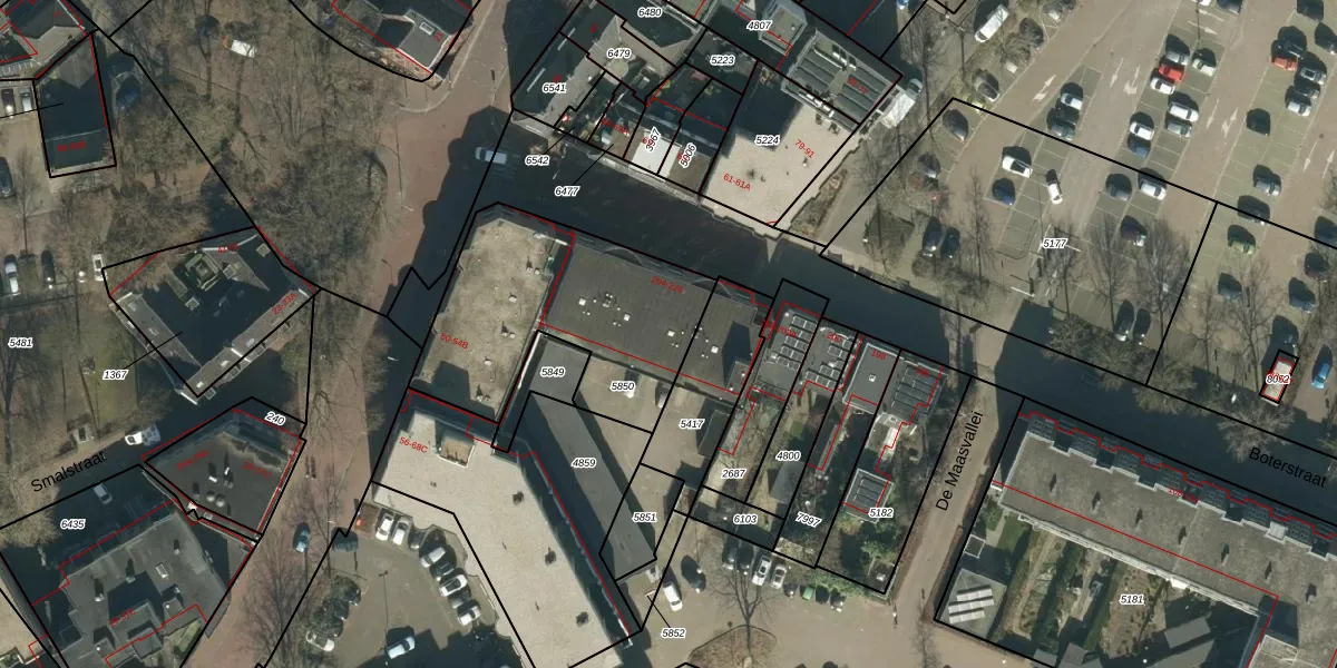 Boterstraat 222 is gelegen op kadastraal perceel OSS00E5850. Deze kadastrale aanduiding is uniek en wordt gebruikt door het Kadaster om eigendomsrechten en andere zakelijke rechten vast te leggen. Het perceel maakt onderdeel uit van de kadastrale gemeente Oss.
