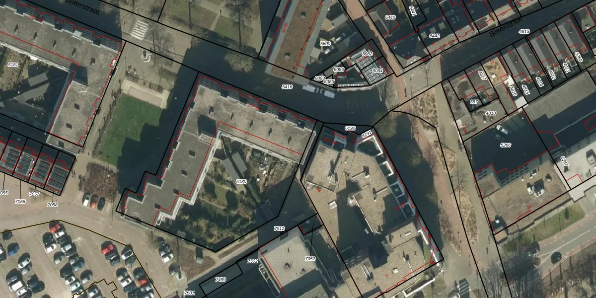 Boterstraat 86 is gelegen op kadastraal perceel OSS00E5180. Deze kadastrale aanduiding is uniek en wordt gebruikt door het Kadaster om eigendomsrechten en andere zakelijke rechten vast te leggen. Het perceel maakt onderdeel uit van de kadastrale gemeente Oss.