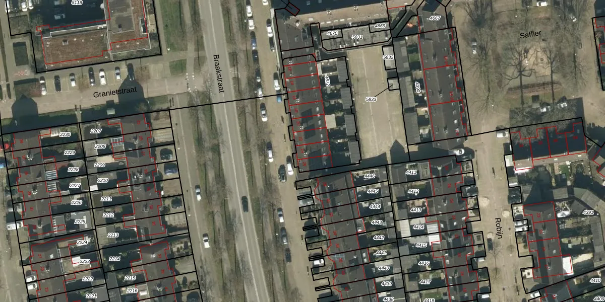 Het perceel waarop Braakstraat 24 staat heeft een oppervlakte van 794 m². Dit is een groot perceel. De perceeloppervlakte wordt geregistreerd door het Kadaster. Gedetailleerde informatie over de maten van dit perceel kunt u vinden in het rapport Kadastrale kaart met maatvoering van Braakstraat 24.