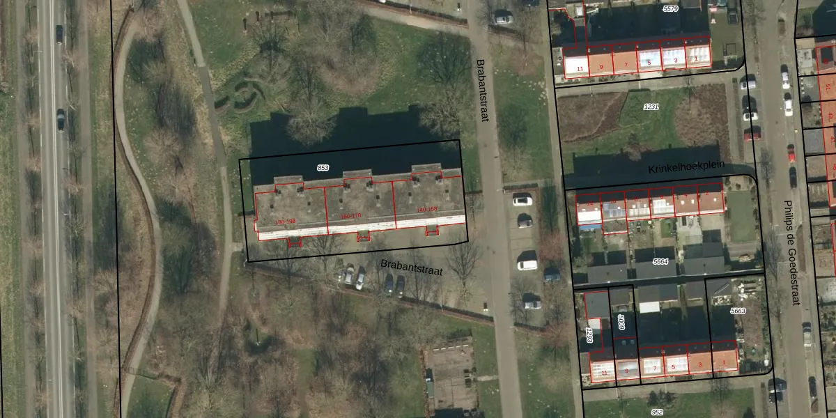 Het perceel waarop Brabantstraat 152 staat heeft een oppervlakte van 1323 m². Dit is een zeer groot perceel. De perceeloppervlakte wordt geregistreerd door het Kadaster. Gedetailleerde informatie over de maten van dit perceel kunt u vinden in het rapport Kadastrale kaart met maatvoering van Brabantstraat 152.