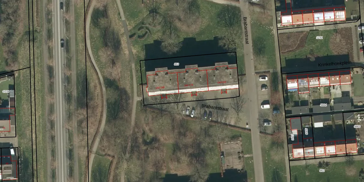 Het perceel waarop Brabantstraat 178 staat heeft een oppervlakte van 1323 m². Dit is een zeer groot perceel. De perceeloppervlakte wordt geregistreerd door het Kadaster. Gedetailleerde informatie over de maten van dit perceel kunt u vinden in het rapport Kadastrale kaart met maatvoering van Brabantstraat 178.