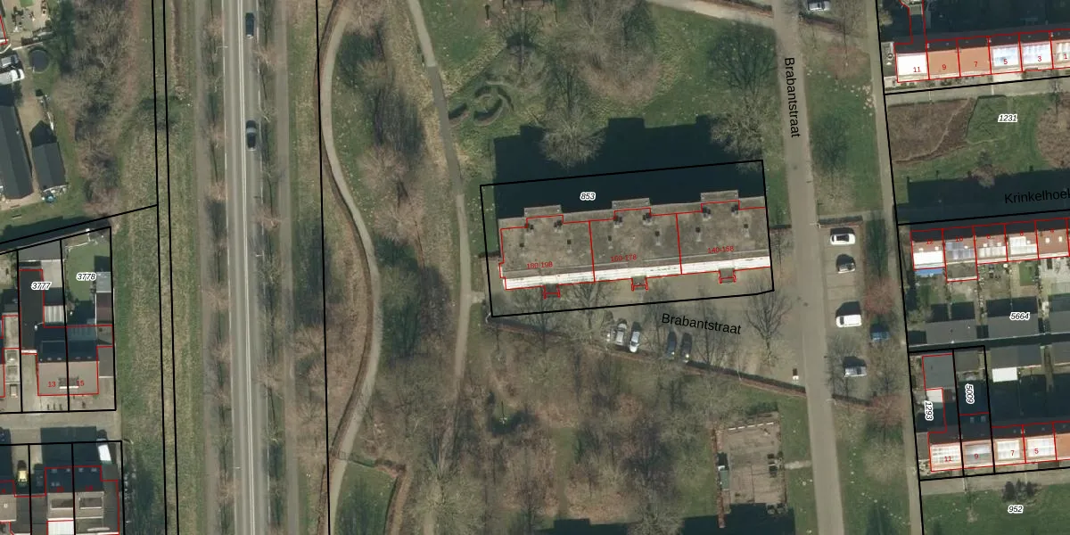 Het perceel waarop Brabantstraat 192 staat heeft een oppervlakte van 1323 m². Dit is een zeer groot perceel. De perceeloppervlakte wordt geregistreerd door het Kadaster. Gedetailleerde informatie over de maten van dit perceel kunt u vinden in het rapport Kadastrale kaart met maatvoering van Brabantstraat 192.