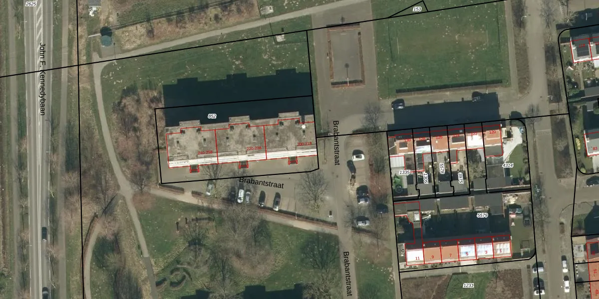 Het perceel waarop Brabantstraat 204 staat heeft een oppervlakte van 1325 m². Dit is een zeer groot perceel. De perceeloppervlakte wordt geregistreerd door het Kadaster. Gedetailleerde informatie over de maten van dit perceel kunt u vinden in het rapport Kadastrale kaart met maatvoering van Brabantstraat 204.