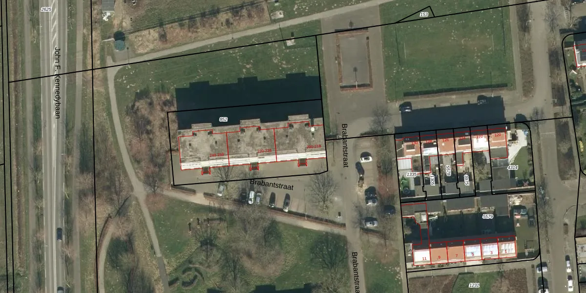 Brabantstraat 210 is gelegen op kadastraal perceel OSS00K852. Deze kadastrale aanduiding is uniek en wordt gebruikt door het Kadaster om eigendomsrechten en andere zakelijke rechten vast te leggen. Het perceel maakt onderdeel uit van de kadastrale gemeente Oss.