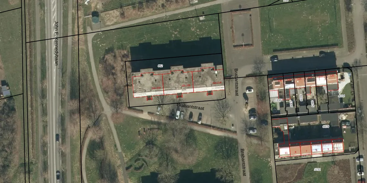Brabantstraat 222 is gelegen op kadastraal perceel OSS00K852. Deze kadastrale aanduiding is uniek en wordt gebruikt door het Kadaster om eigendomsrechten en andere zakelijke rechten vast te leggen. Het perceel maakt onderdeel uit van de kadastrale gemeente Oss.