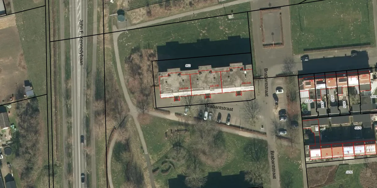 Het perceel waarop Brabantstraat 240 staat heeft een oppervlakte van 1325 m². Dit is een zeer groot perceel. De perceeloppervlakte wordt geregistreerd door het Kadaster. Gedetailleerde informatie over de maten van dit perceel kunt u vinden in het rapport Kadastrale kaart met maatvoering van Brabantstraat 240.