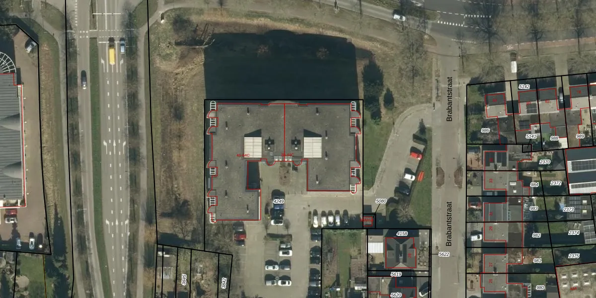 Het perceel waarop Brabantstraat 36-C staat heeft een oppervlakte van 3317 m². Dit is een zeer groot perceel. De perceeloppervlakte wordt geregistreerd door het Kadaster. Gedetailleerde informatie over de maten van dit perceel kunt u vinden in het rapport Kadastrale kaart met maatvoering van Brabantstraat 36-C.