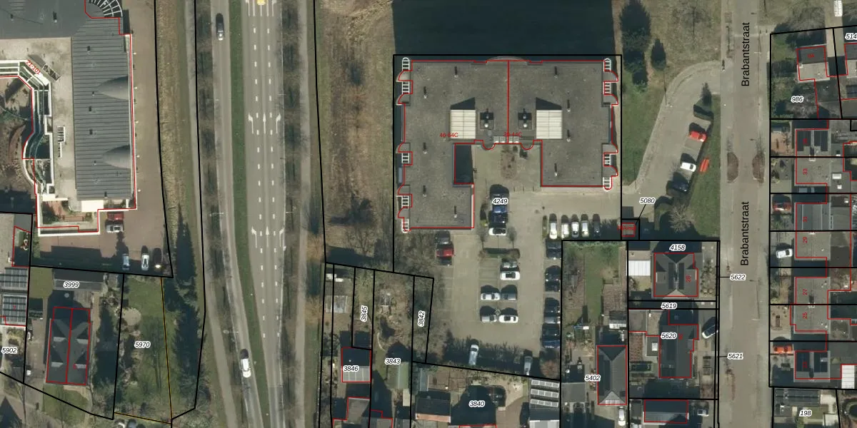 Het perceel waarop Brabantstraat 54-A staat heeft een oppervlakte van 3317 m². Dit is een zeer groot perceel. De perceeloppervlakte wordt geregistreerd door het Kadaster. Gedetailleerde informatie over de maten van dit perceel kunt u vinden in het rapport Kadastrale kaart met maatvoering van Brabantstraat 54-A.