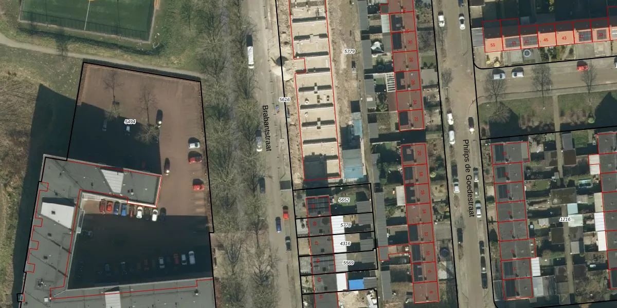 Het perceel waarop Brabantstraat 55 staat heeft een oppervlakte van 5659 m². Dit is een zeer groot perceel. De perceeloppervlakte wordt geregistreerd door het Kadaster. Gedetailleerde informatie over de maten van dit perceel kunt u vinden in het rapport Kadastrale kaart met maatvoering van Brabantstraat 55.