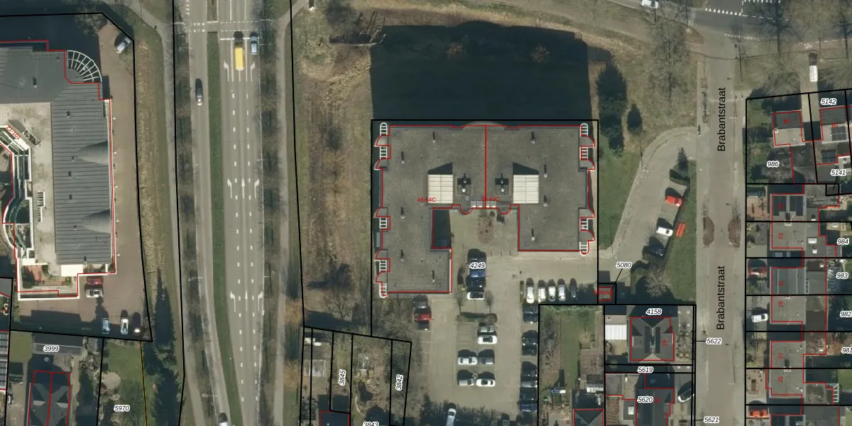 Het perceel waarop Brabantstraat 58-C staat heeft een oppervlakte van 3317 m². Dit is een zeer groot perceel. De perceeloppervlakte wordt geregistreerd door het Kadaster. Gedetailleerde informatie over de maten van dit perceel kunt u vinden in het rapport Kadastrale kaart met maatvoering van Brabantstraat 58-C.
