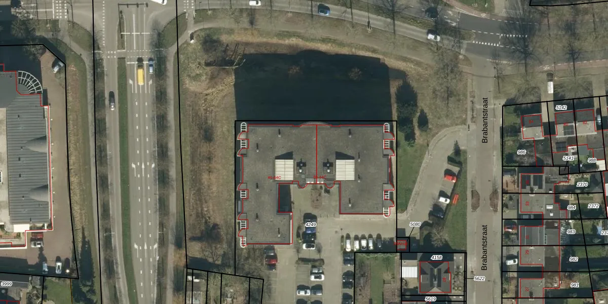 Het perceel waarop Brabantstraat 64-A staat heeft een oppervlakte van 3317 m². Dit is een zeer groot perceel. De perceeloppervlakte wordt geregistreerd door het Kadaster. Gedetailleerde informatie over de maten van dit perceel kunt u vinden in het rapport Kadastrale kaart met maatvoering van Brabantstraat 64-A.