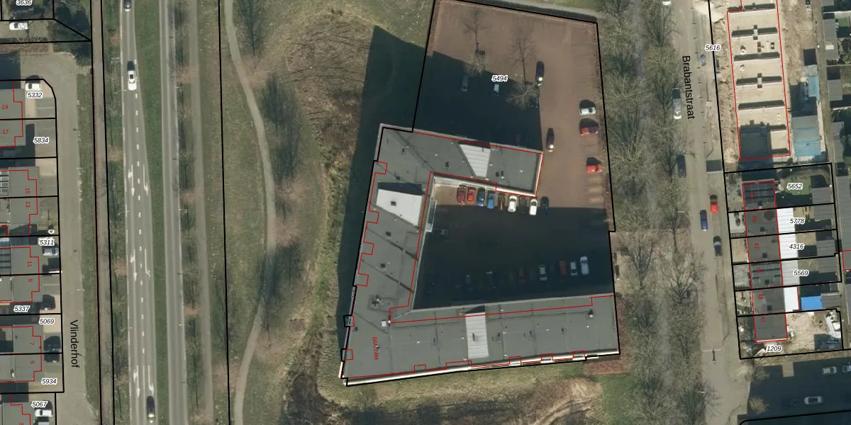 Het perceel waarop Brabantstraat 66-M staat heeft een oppervlakte van 4545 m². Dit is een zeer groot perceel. De perceeloppervlakte wordt geregistreerd door het Kadaster. Gedetailleerde informatie over de maten van dit perceel kunt u vinden in het rapport Kadastrale kaart met maatvoering van Brabantstraat 66-M.