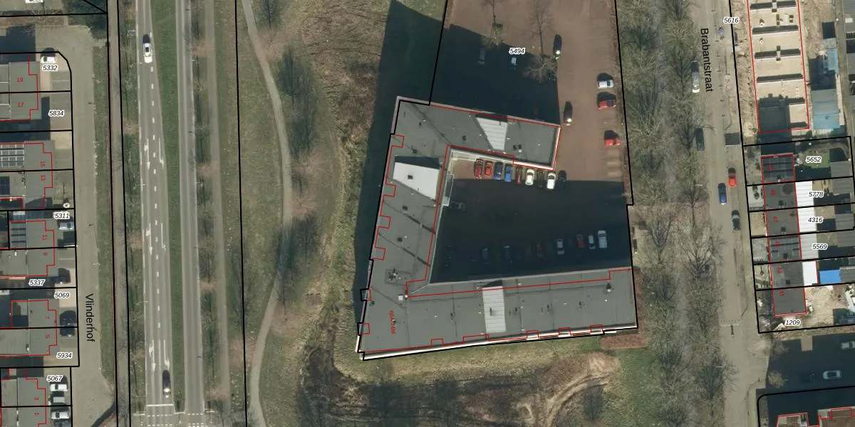 Het perceel waarop Brabantstraat 68-L staat heeft een oppervlakte van 4545 m². Dit is een zeer groot perceel. De perceeloppervlakte wordt geregistreerd door het Kadaster. Gedetailleerde informatie over de maten van dit perceel kunt u vinden in het rapport Kadastrale kaart met maatvoering van Brabantstraat 68-L.