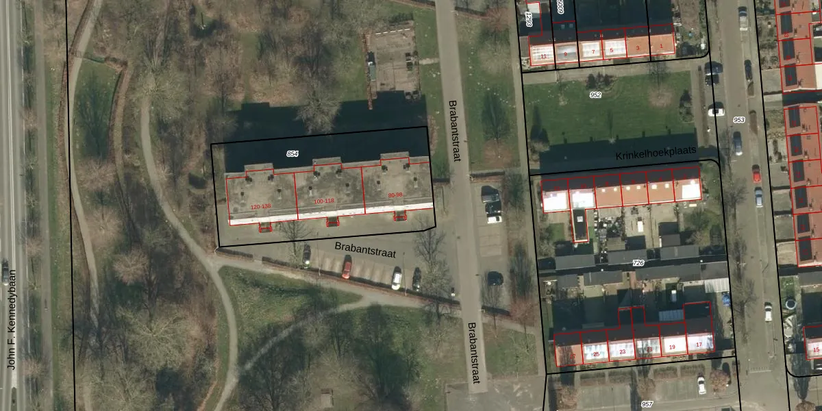 Het perceel waarop Brabantstraat 82 staat heeft een oppervlakte van 1322 m². Dit is een zeer groot perceel. De perceeloppervlakte wordt geregistreerd door het Kadaster. Gedetailleerde informatie over de maten van dit perceel kunt u vinden in het rapport Kadastrale kaart met maatvoering van Brabantstraat 82.
