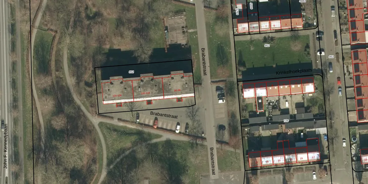 Het perceel waarop Brabantstraat 84 staat heeft een oppervlakte van 1322 m². Dit is een zeer groot perceel. De perceeloppervlakte wordt geregistreerd door het Kadaster. Gedetailleerde informatie over de maten van dit perceel kunt u vinden in het rapport Kadastrale kaart met maatvoering van Brabantstraat 84.