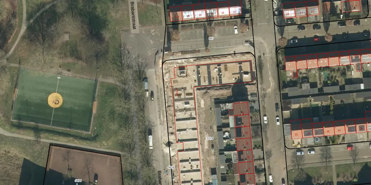 Het perceel waarop Brabantstraat 97 staat heeft een oppervlakte van 5659 m². Dit is een zeer groot perceel. De perceeloppervlakte wordt geregistreerd door het Kadaster. Gedetailleerde informatie over de maten van dit perceel kunt u vinden in het rapport Kadastrale kaart met maatvoering van Brabantstraat 97.