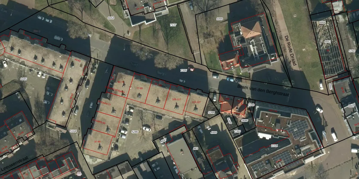 Bram van den Berghstraat 105 is gelegen op kadastraal perceel OSS00E5286. Deze kadastrale aanduiding is uniek en wordt gebruikt door het Kadaster om eigendomsrechten en andere zakelijke rechten vast te leggen. Het perceel maakt onderdeel uit van de kadastrale gemeente Oss.