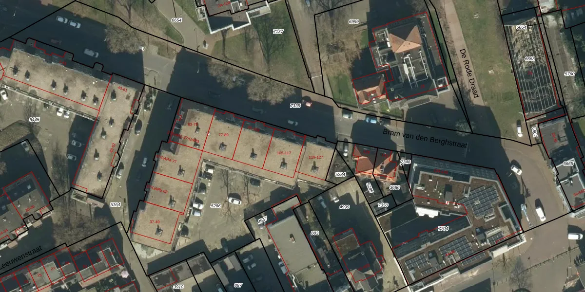 Het perceel waarop Bram van den Berghstraat 109 staat heeft een oppervlakte van 2495 m². Dit is een zeer groot perceel. De perceeloppervlakte wordt geregistreerd door het Kadaster. Gedetailleerde informatie over de maten van dit perceel kunt u vinden in het rapport Kadastrale kaart met maatvoering van Bram van den Berghstraat 109.